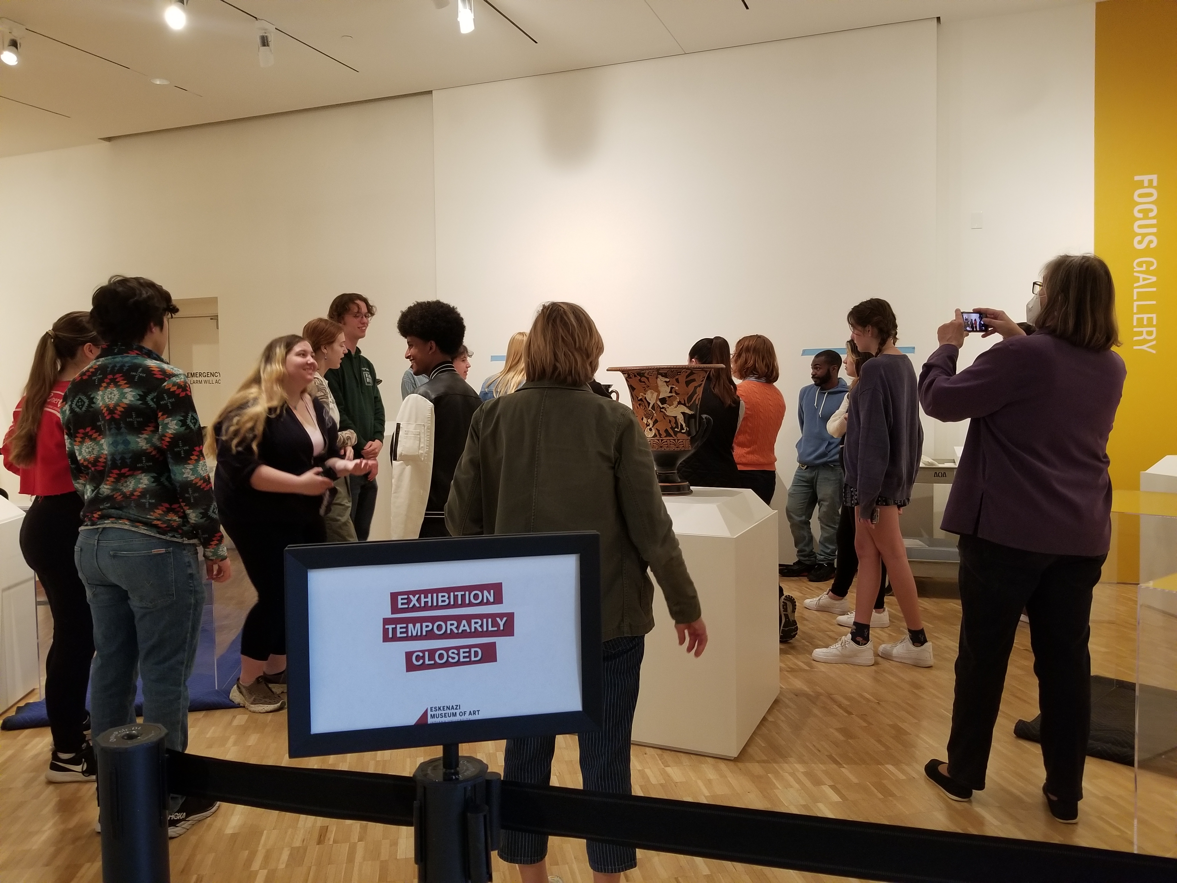 Last week students in Professor Julie Van Voorhis’s course "Storytelling in Ancient Greek & Roman Art" worked together with staff at the Eskenazi Museum of Art to install the exhibition, Life and Legend: Storytelling and Greek Pottery. Students in the Arts and Sciences Undergraduate Research Experience (ASURE) program, supervised by Dr. Julie Van Voorhis and Curator of Ancient Art Juliet Graver Istrabadi, participated in research projects that led to the creation of this exhibition on vase painting in ancient Greece.